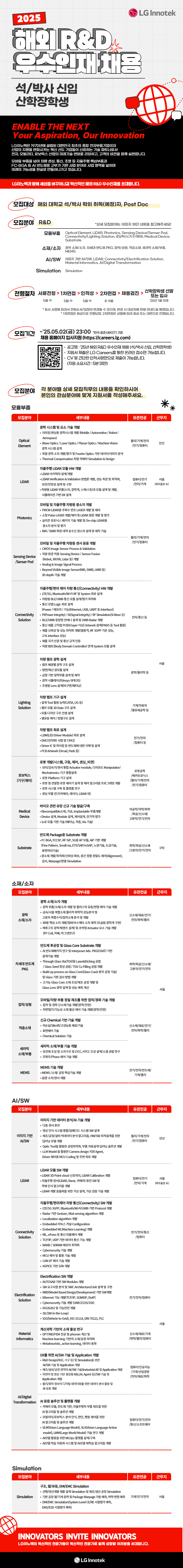 📢 LG이노텍 2025년 해외 R&D 우수 인재(석/박사 신입 및 산학 장학생) 채용 (~5/2까지)