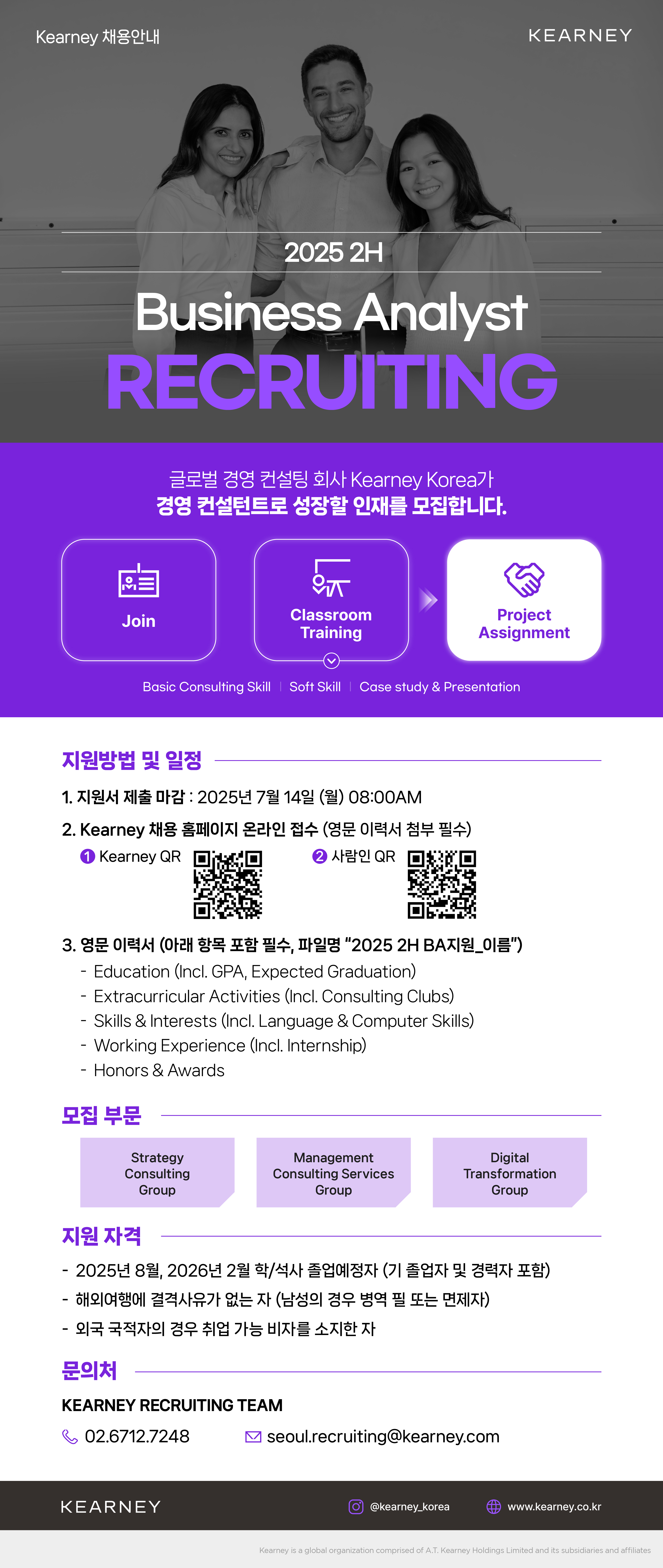 [Kearney Korea] 2025 하반기 Business Analyst 공개채용 (-7/14)