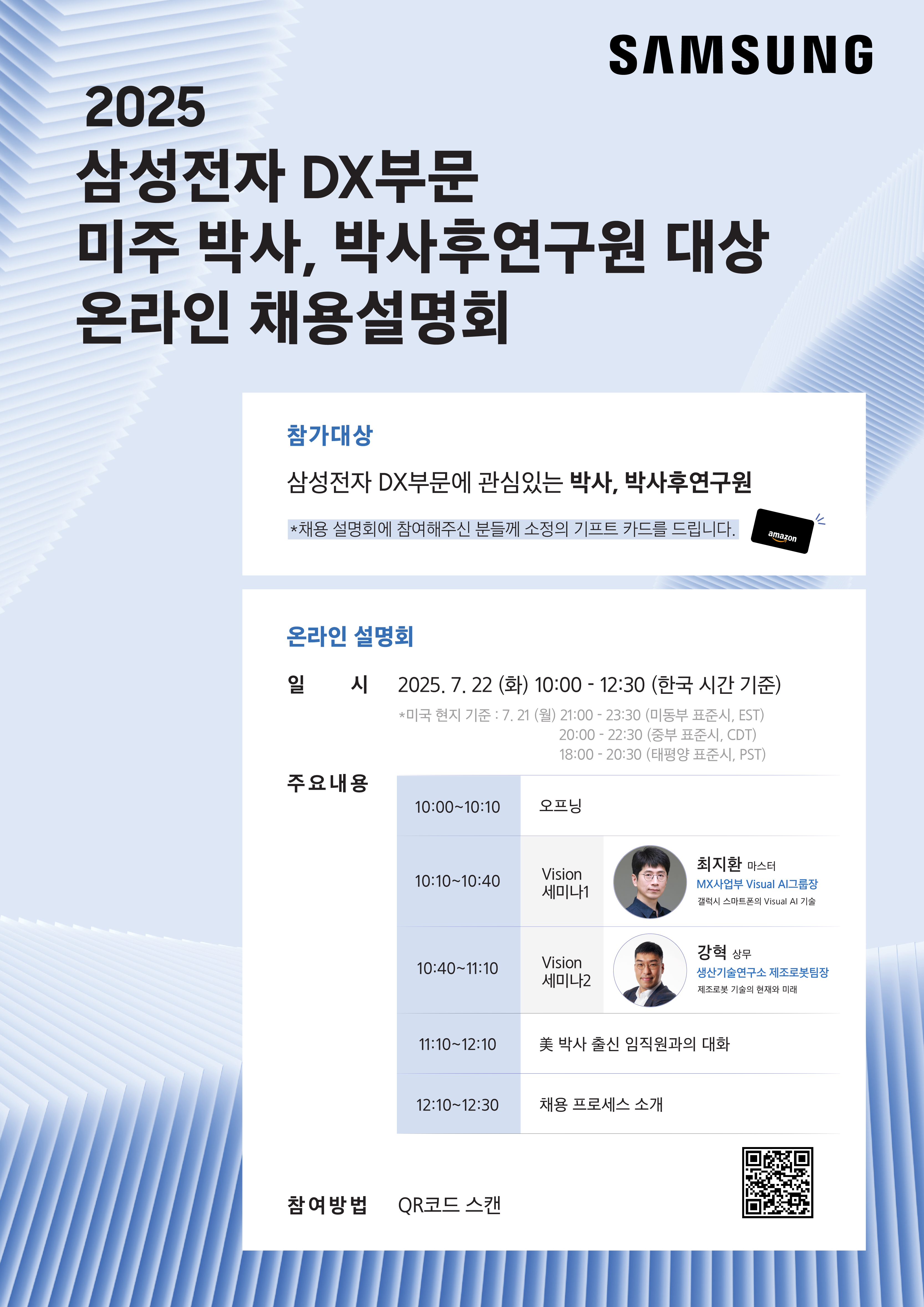 [2025 삼성전자 DX부문 미주 박사, PostDoc 대상 온라인 채용설명회]